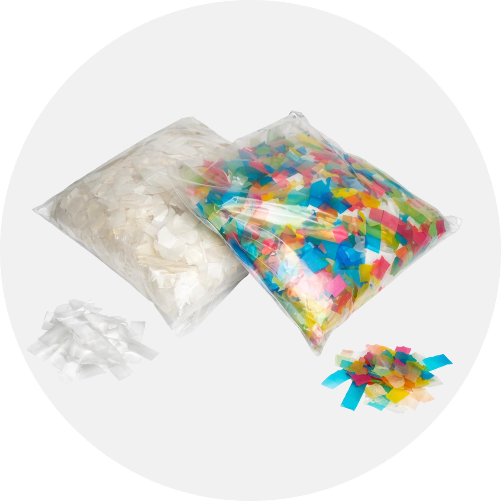 Nuestro equipo cuenta con años de experiencia en el sector de efectos especiales. Te ayudamos a elegir el tipo de confeti adecuado según tu máquina, tipo de evento, espacio disponible y efecto deseado.