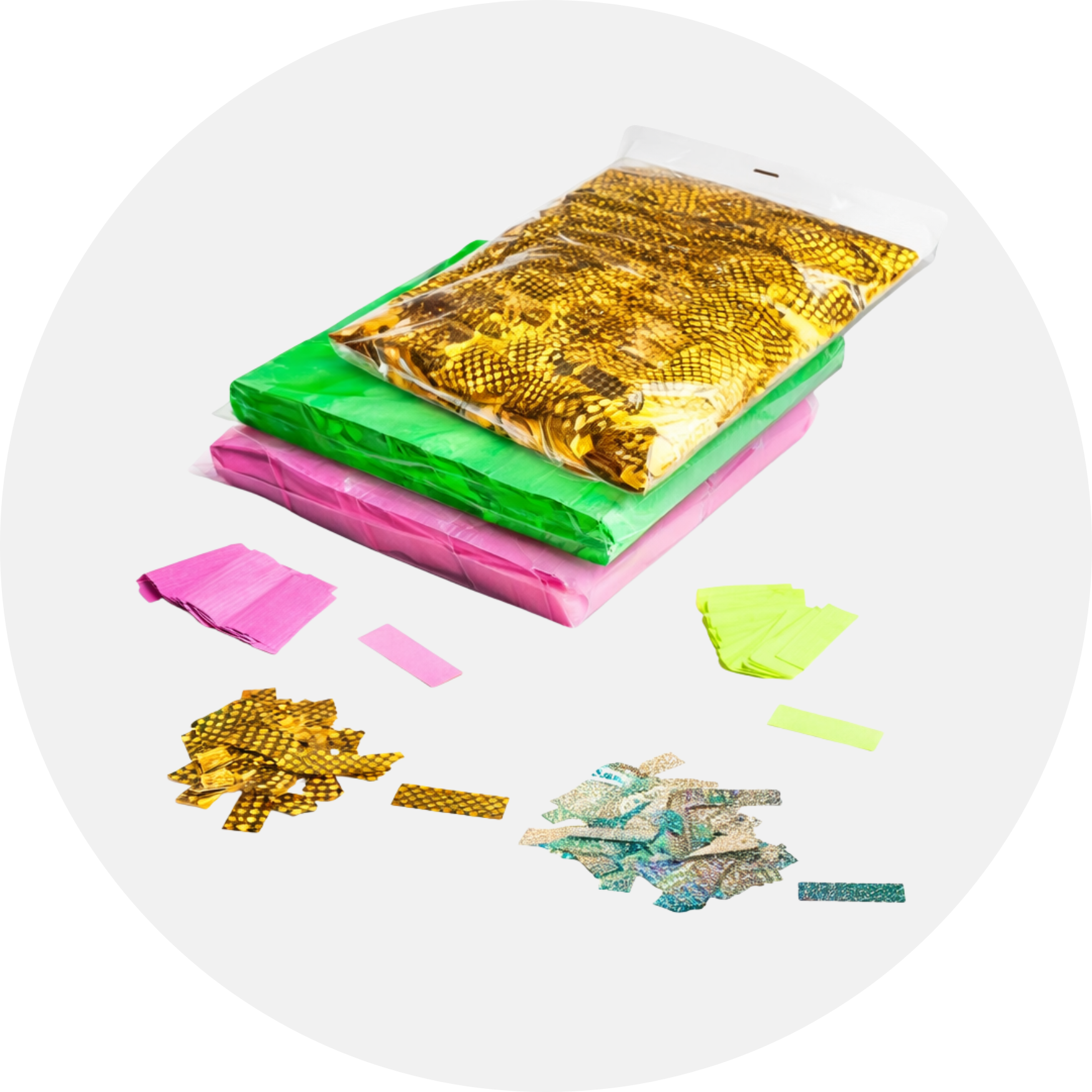 Cada evento tiene sus propias características, y elegir el confeti apropiado potencia exponencialmente el impacto del efecto: