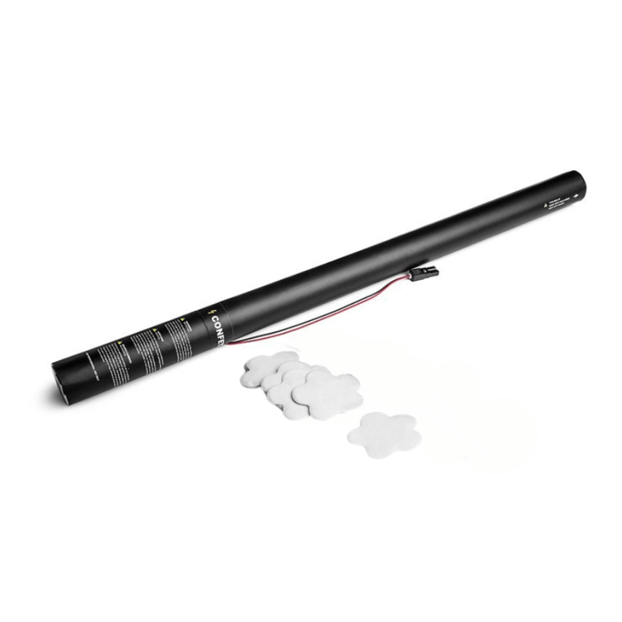 Los Cartuchos Eléctricos de 80 cm rellenos de Confeti de Flores Blancas de Máquinas FX son perfectos para crear un efecto visual elegante y sofisticado en cualquier evento. Fabricados con confeti de papel ignífugo y biodegradable, garantizan un uso profesional seguro y respetuoso con el medio ambiente.
