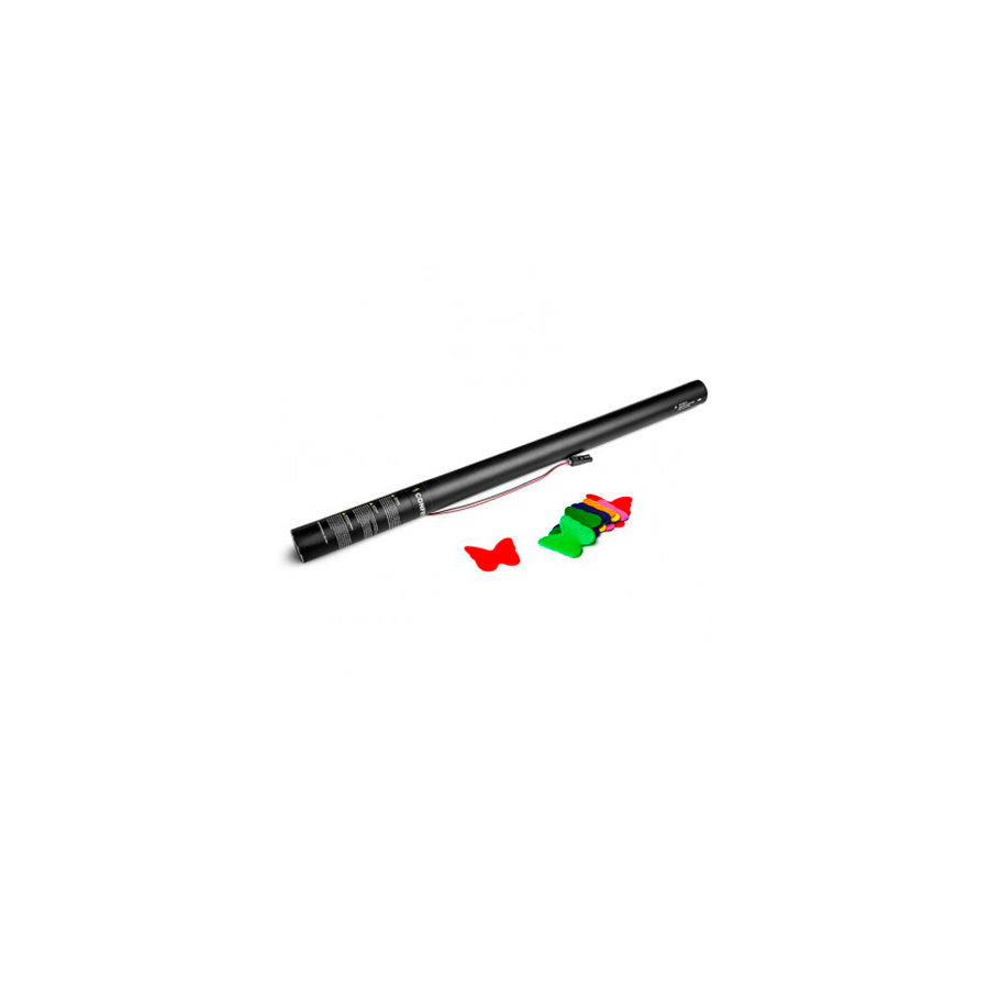 Los Cartuchos Eléctricos de 80 cm rellenos de Mariposas Multicolor de Máquinas FX son perfectos para añadir un efecto visual dinámico y alegre a cualquier evento. Fabricados con confeti de papel ignífugo y biodegradable, garantizan un uso profesional seguro y respetuoso con el medio ambiente.