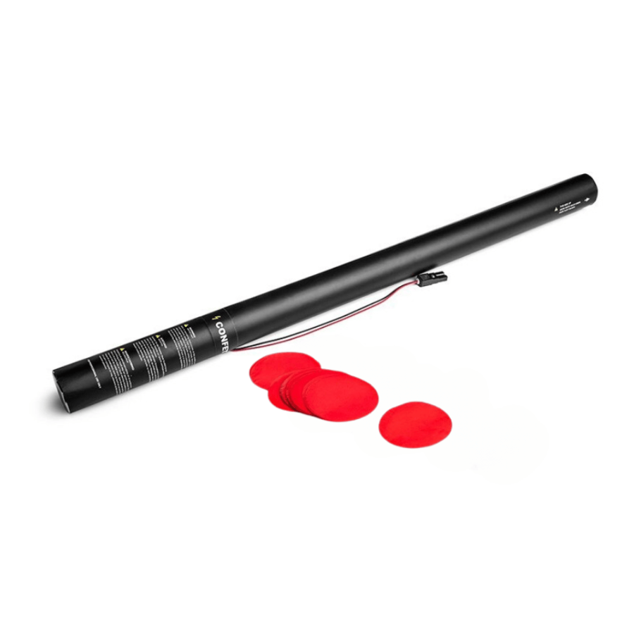 Los Cartuchos Eléctricos de 80 cm rellenos de Confeti Redondo Rojo de Máquinas FX son perfectos para aportar un efecto visual vibrante y llamativo en cualquier evento. Fabricados con confeti de papel ignífugo y biodegradable, garantizan un uso profesional seguro y respetuoso con el medio ambiente.