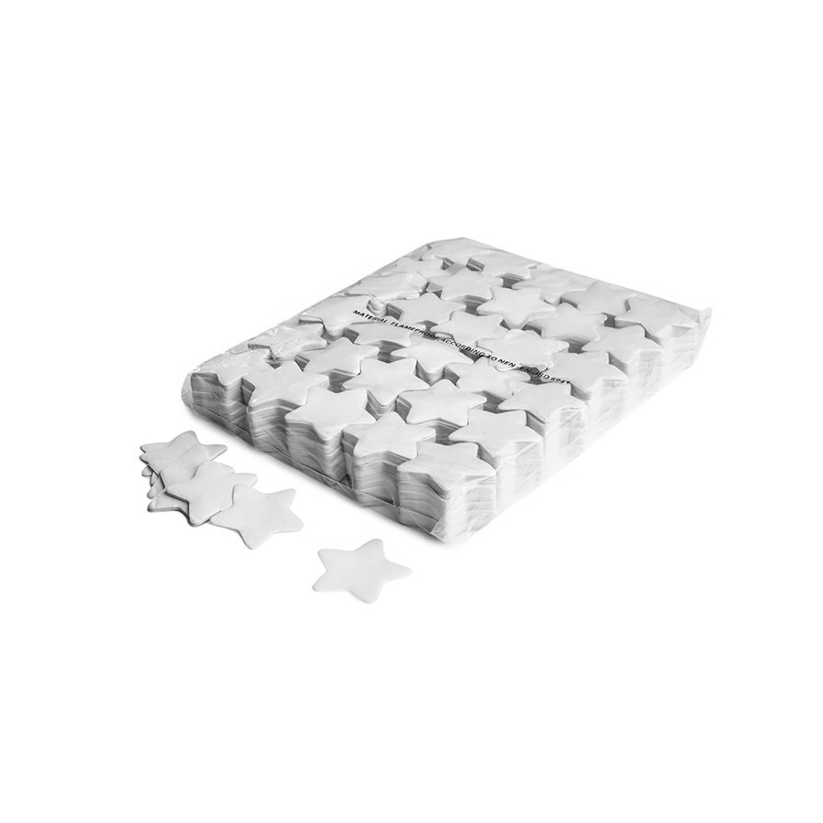 El confeti de papel con forma de estrellas blanco es otro de los confetis especiales de los que disponemos en Maquinas FX para dar un toque alegre y divertido en cualquier evento.