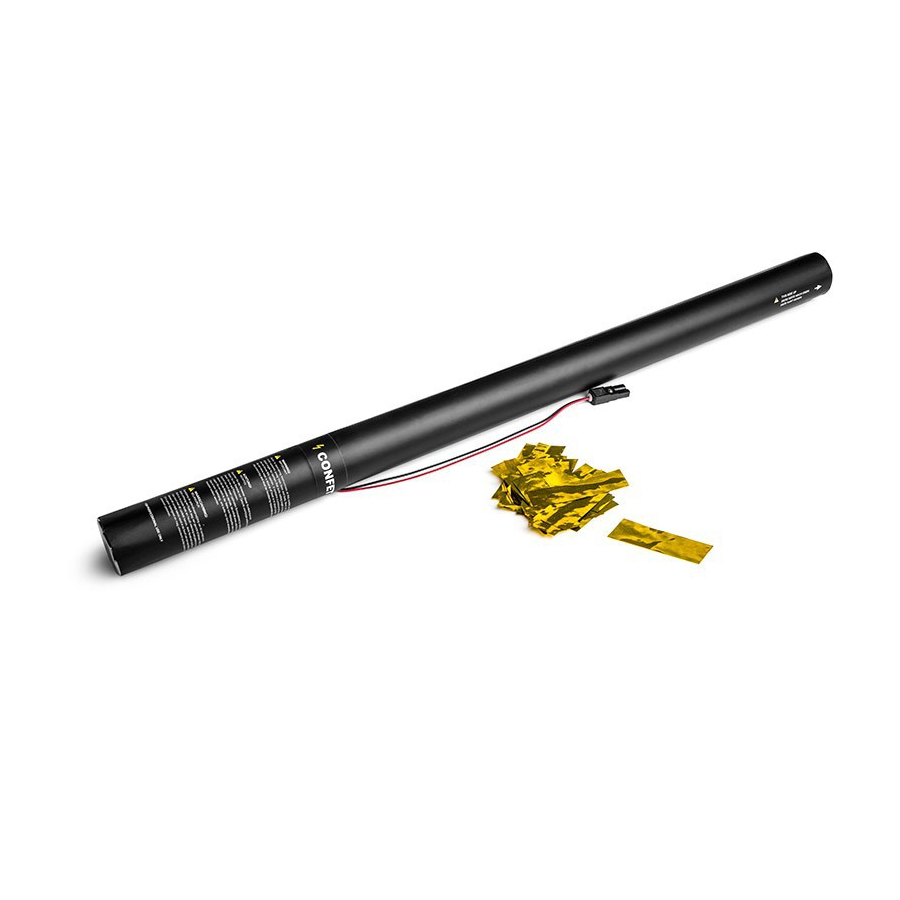 80 cm electric cartridges filled with gold-coloured, fireproof rectangular confetti. All our cartridges are filled to maximum capacity with confetti and streamers.