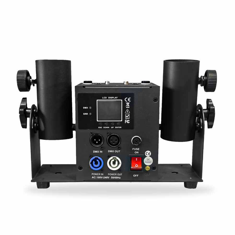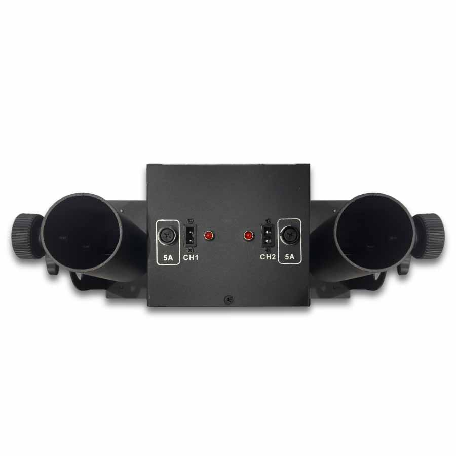 It is a professional launcher that allows you to fire two electric confetti or streamer cartridges up to 80 cm. It uses 6 DMX channels to fire independently or together, offering total control of the launch at professional events.