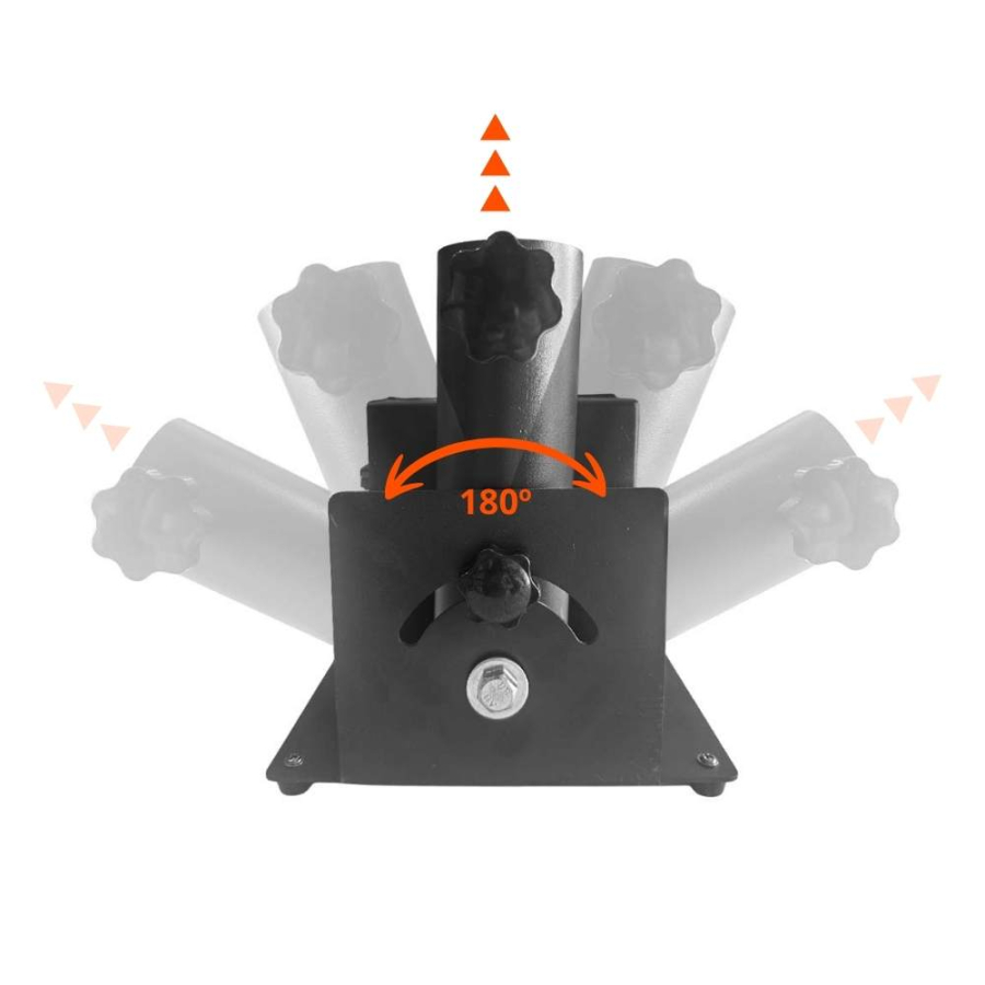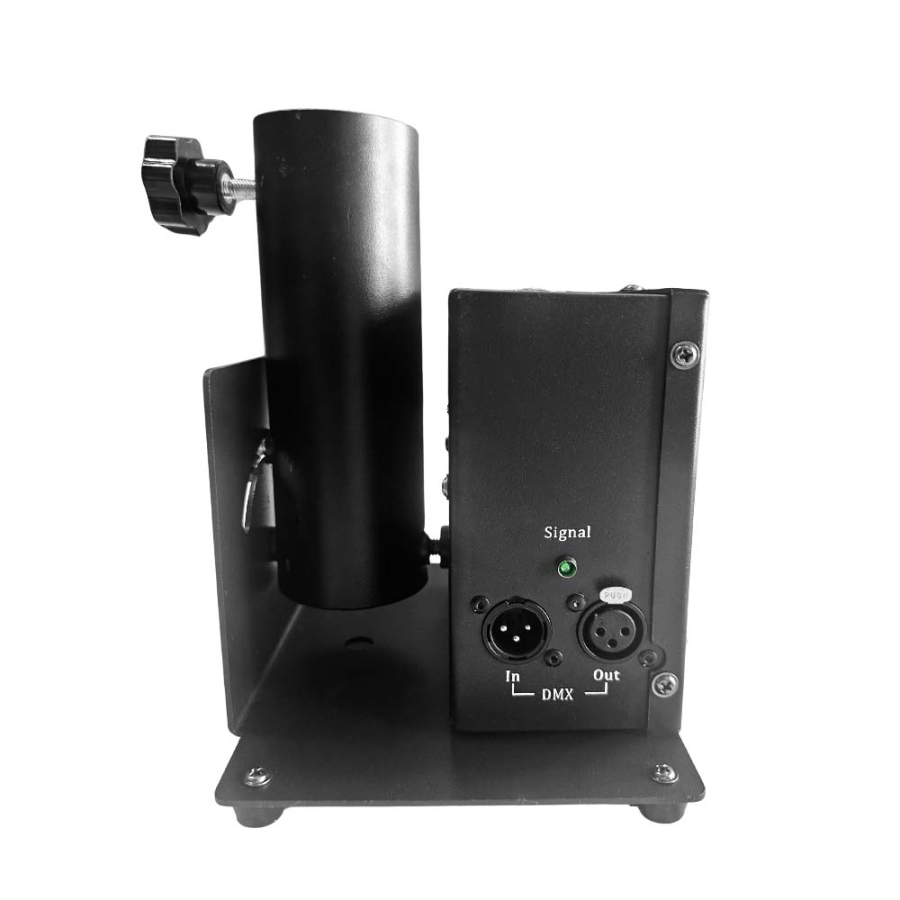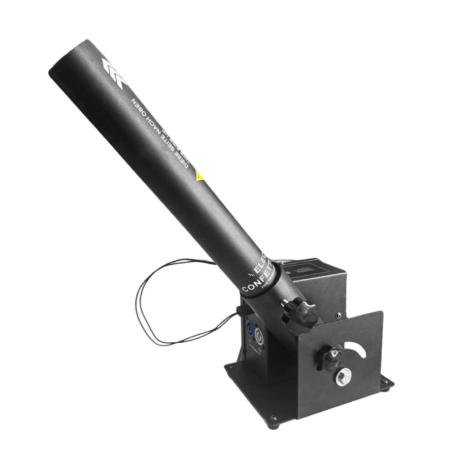 With a 180º launch angle, it provides wide distribution of confetti or streamers, creating a stunning visual impact. It comes with two mounting systems to ensure stability: one for placing it on the ground and another for truss-type structures using clamps, adapting to different stage configurations.