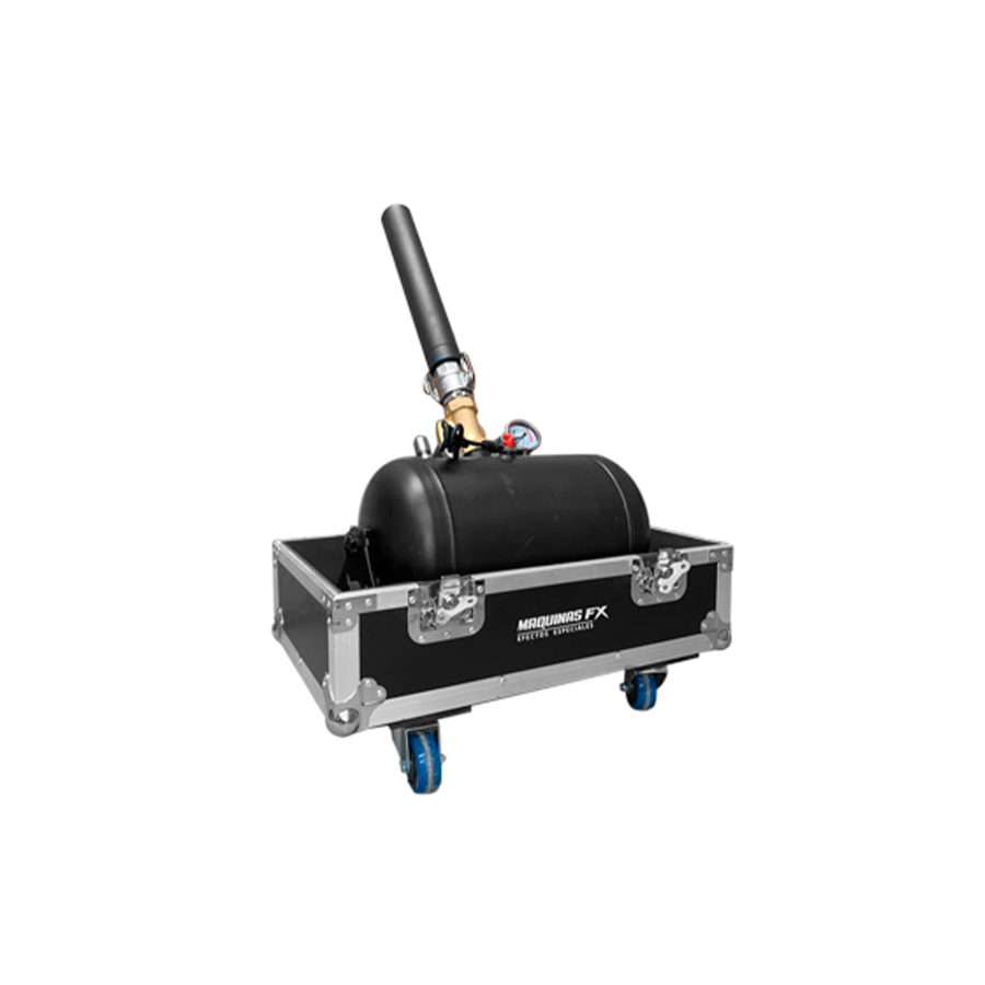 The Mini Stadium Cannon is a professional confetti and streamer machine designed to shoot effects over long distances using compressed air. Perfect for events that require high power, this cannon shoots confetti up to 10 metres and streamers over 15 metres, creating a spectacular visual impact.