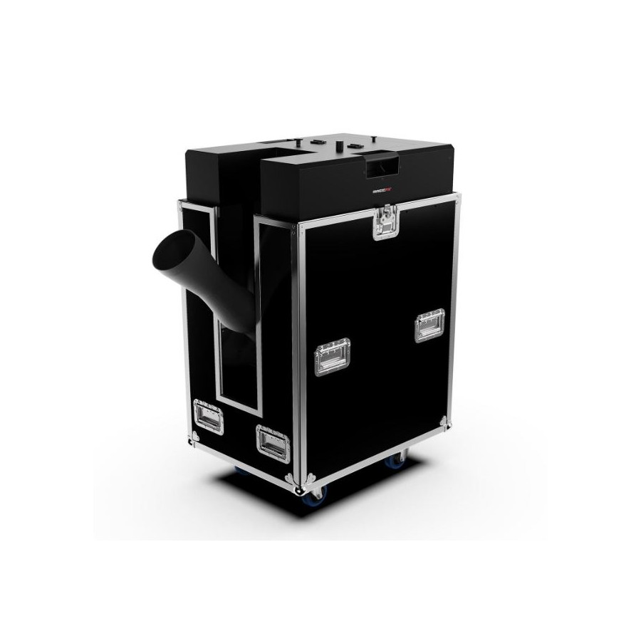 It includes two chambers for different types of confetti and an adjustable outlet tube up to 45 degrees to control the angle of the effect.