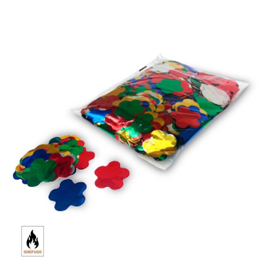 FX Machines Multicoloured Metallic Flower Confetti is perfect for adding a bright and fun touch to any celebration. Available in multicolour, gold and silver, this confetti is fireproof, ensuring safety and respect for the environment.
