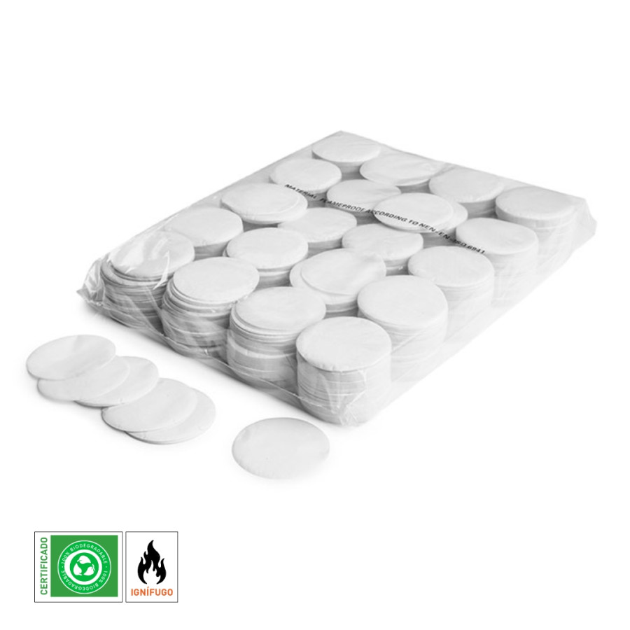 Maquinas FX White Round Paper Confetti is the perfect choice for creating a festive, vibrant and colourful atmosphere at any celebration. Now available in multiple colours and with an added bonus: it is fireproof and BIODEGRADABLE, ensuring safety and respect for the environment.