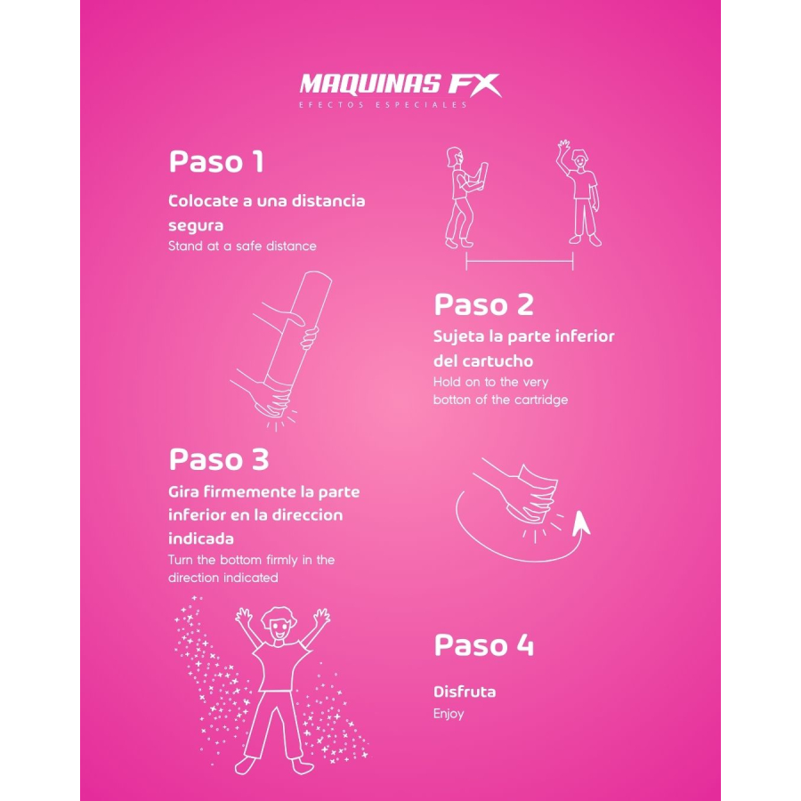 Easy to use and no additional devices required: just twist the barrel with a firm motion and the powder will be released, creating a spectacular visual effect that will make your event stand out.