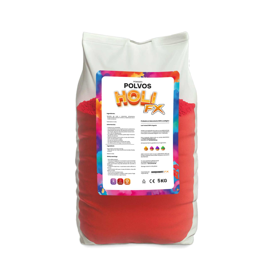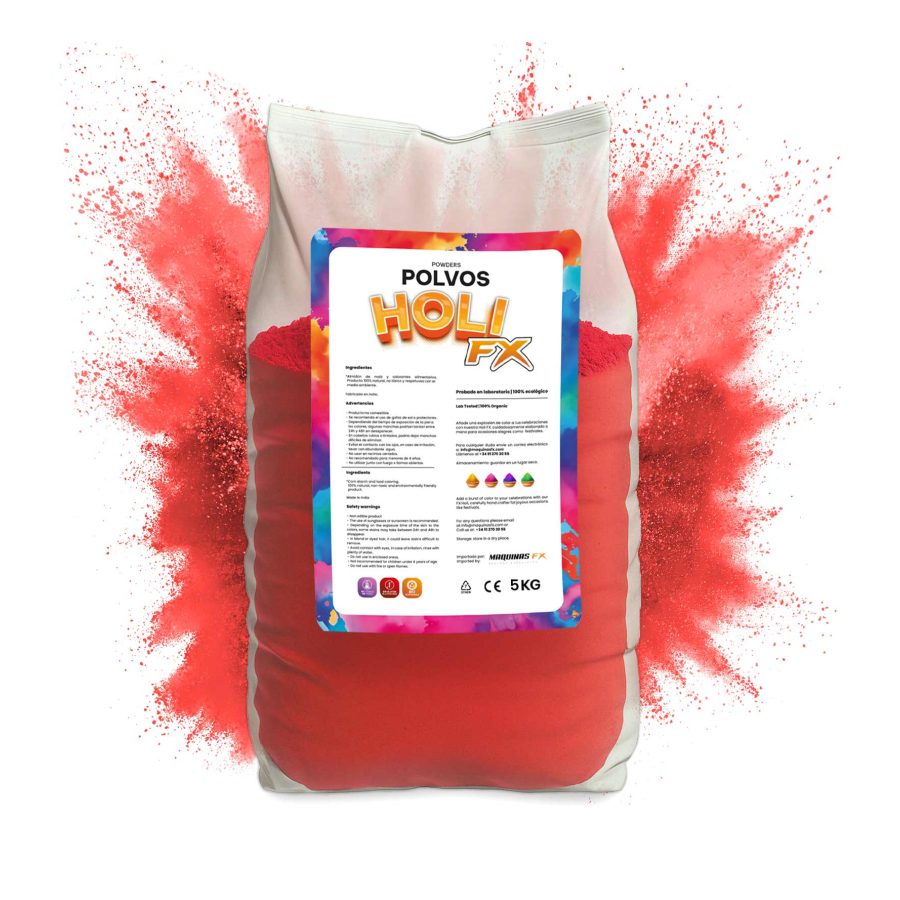 Fill your event with joy and colour with the 5kg bag of HOLI FX Red Powder. Buy online and receive it anywhere in Spain with a full guarantee of quality and safety.