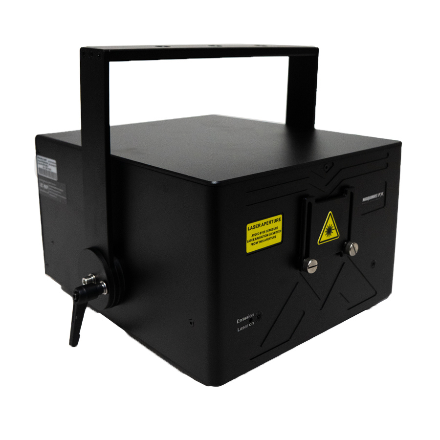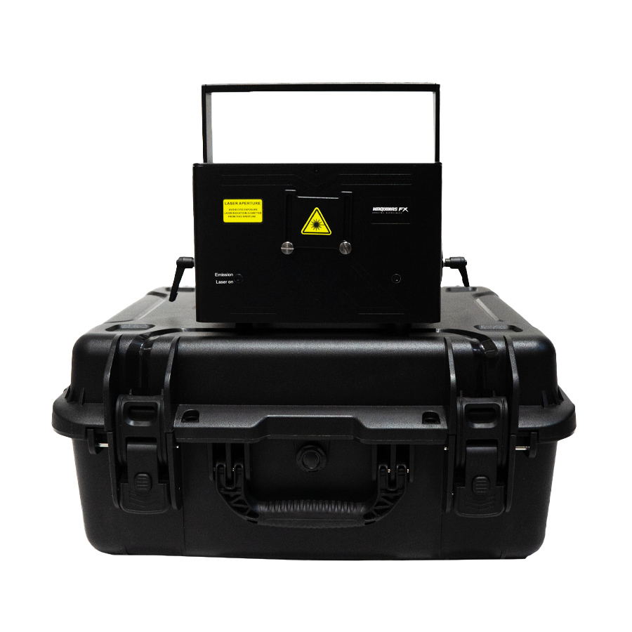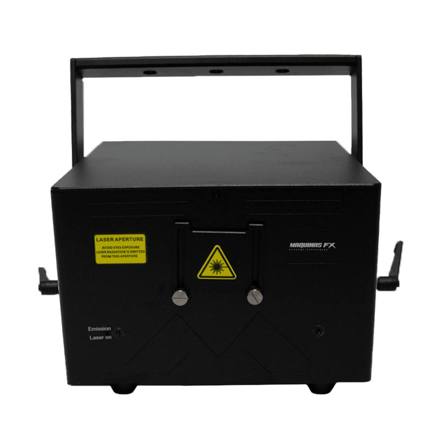 The 10W RGB Laser from Máquinas FX is a professional, analogue-modulated pure diode laser designed to offer an impressive range of visual effects, such as light beams, waves, tunnels and basic graphics. This equipment stands out for its power, precision and versatility, making it perfect for medium-scale events and indoor productions.