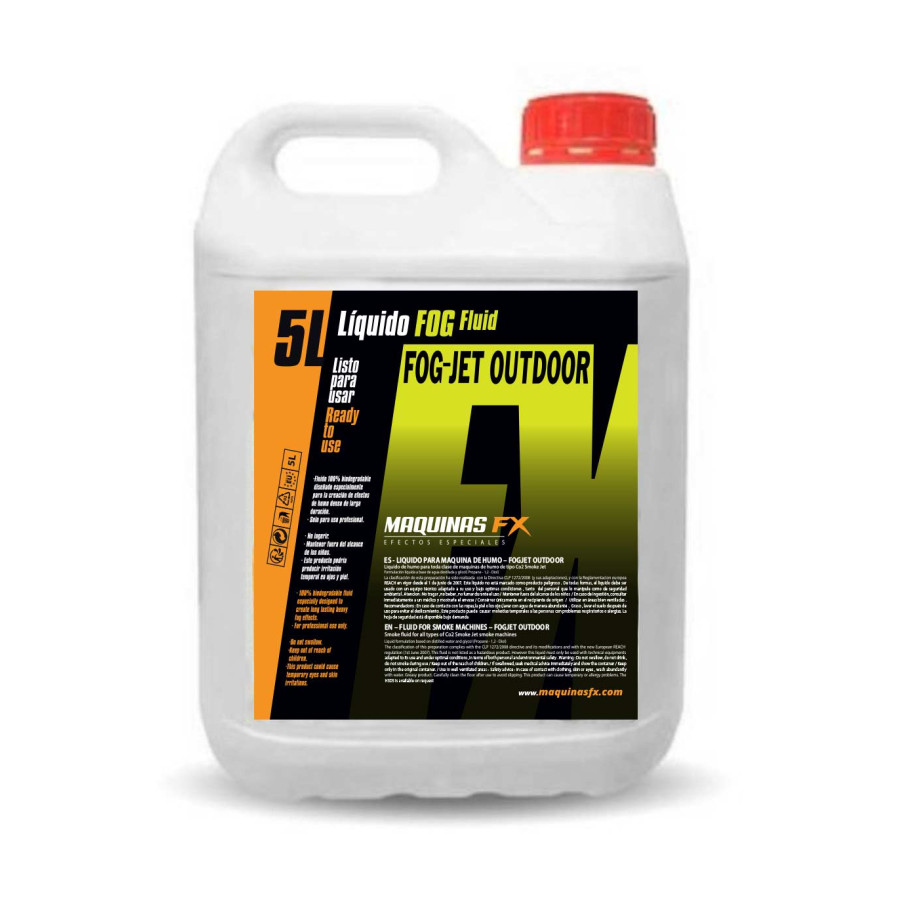 5L smoke fluid for CO₂ effect smoke machines. Specially formulated for outdoor use. Suitable for all types of JET effect smoke machines.