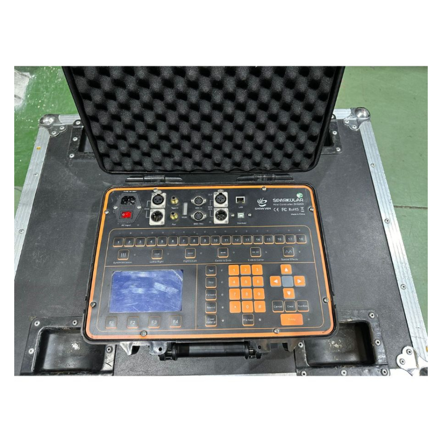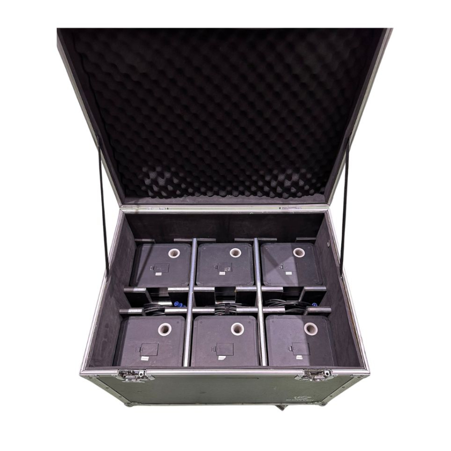 The set includes: 6 Sparkular units, 1 controller, the necessary power/signal cabling and 6 bags of Sparkular granules. All in its flight case.