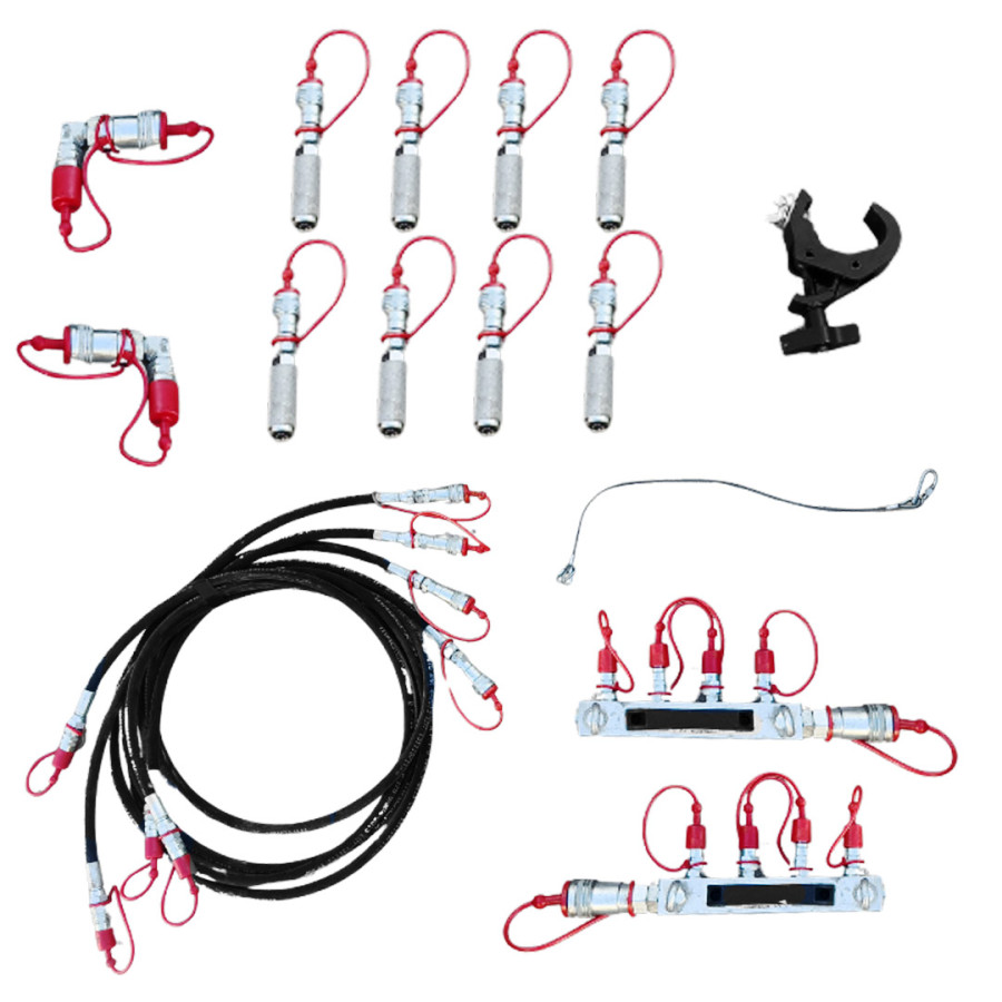 Each unit operates with 4 probe-type CO₂ bottles, reaching powerful bursts of up to 15-18 metres (depending on temperature and humidity conditions).