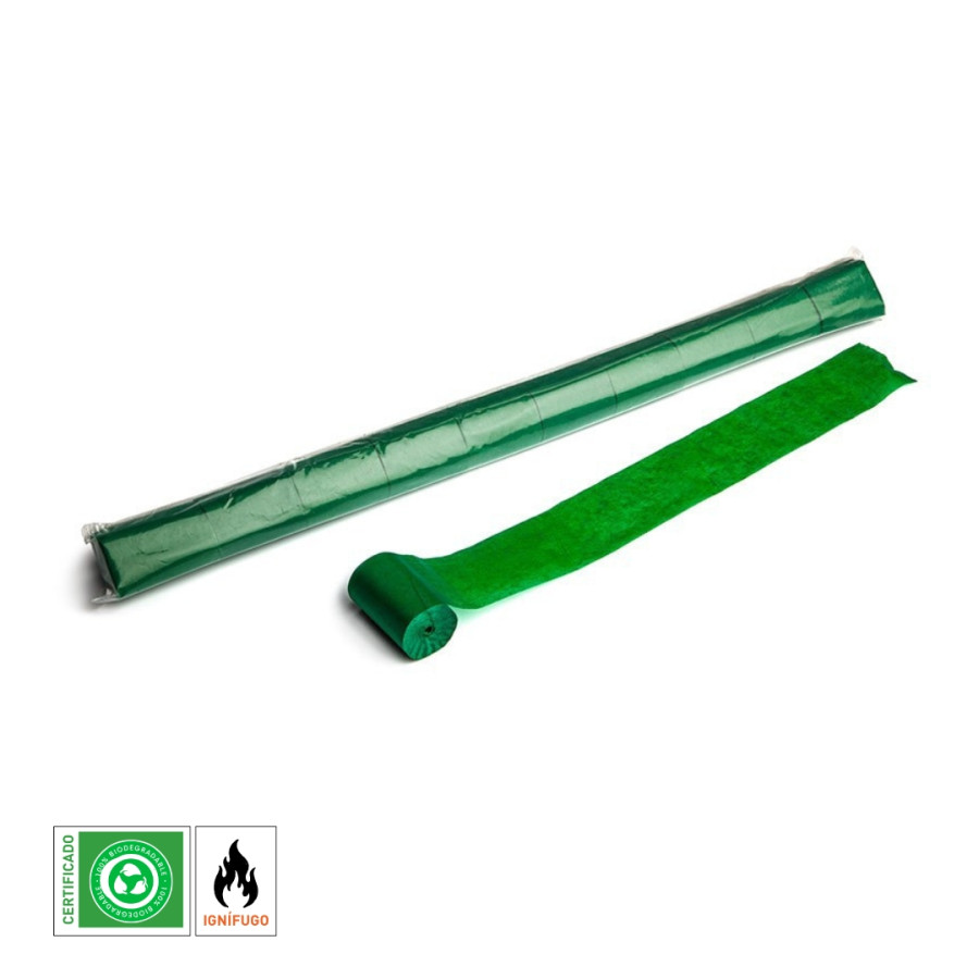Green fireproof paper streamer, in accordance with current regulations. Solid colours and in packs of 10 units. Dimensions: 20 m x 5 cm.