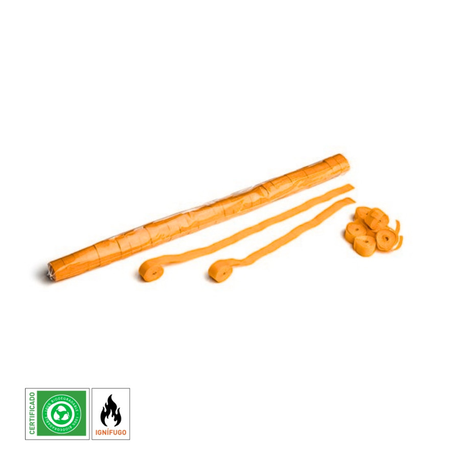 Orange fireproof paper streamer, according to current regulations. Solid colors and in packages of 32 units. Dimensions: 10 m. x 1.5 cm.