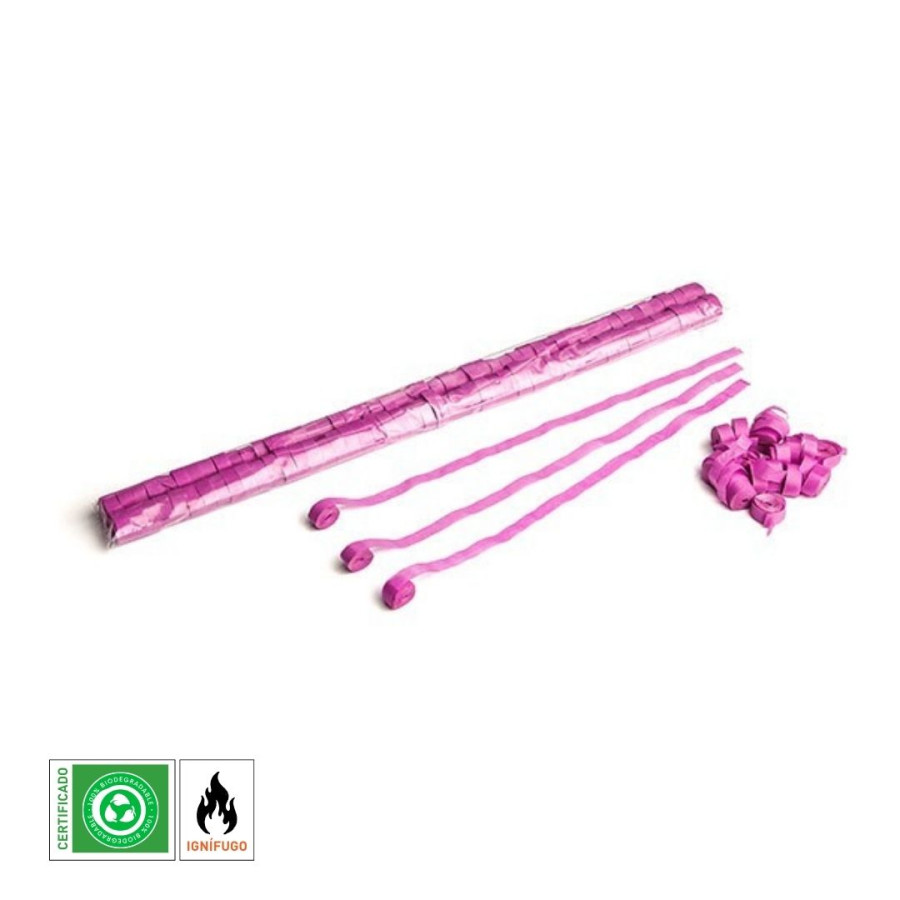 Pink fireproof paper streamer, according to current regulations. Solid colors and in packages of 100 units. Dimensions: 5 x 0.85 m.