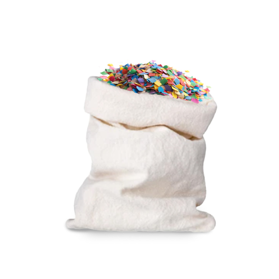Con micro dimensiones, este confeti de papel cae de manera elegante y ligera, generando un efecto visual espectacular. Se presenta en sacos de 10 kilos.